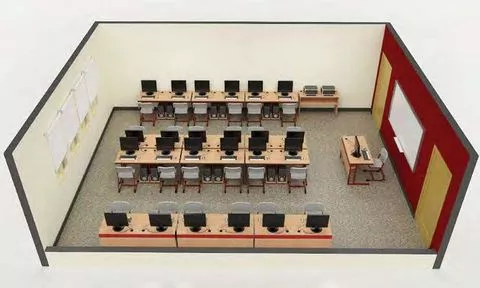 New modern line designs suitable for the modern school. The designs give possibilities for different computer lab arrangements. Either student facing the teacher option or continuing wall bench arrangement, the new design is a continuous self supporting working surface. Used by students and providing space for C . P . U & cable management ducts. The new computer table design allows many layout options for computer labs according to different needs & space requirements.